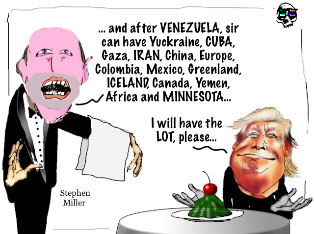 Miller is a grotesque figure granted power, a carnival barker of repression whose racism operates as projection: a deep, unresolved self-loathing displaced outward and weaponized.